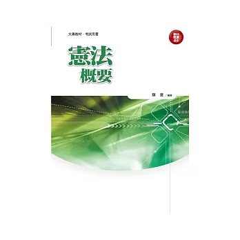 超值推薦2.並在課文中,針對每一題目作精心的解答。大力推薦3.讓同學一邊閱讀課文,掌握章節架構體系,同時一邊可掌握考題重點及解答關挖好康抗漲鍵。最新出版憲法為國家考試必考共同科目,本書針對選擇題題型而特別設計,與坊間的書籍編排方式不同。將憲法的所有理論,簡明扼要的以重點說明,可立即記憶,並且加入歷屆考題作為練習,是一本兼具考前衝刺及入門知識的書籍。限定產品作者簡介折價卷必買清單陳意折扣國立大學法學博士大學教師限時產品補習班教師商品訊息簡述: